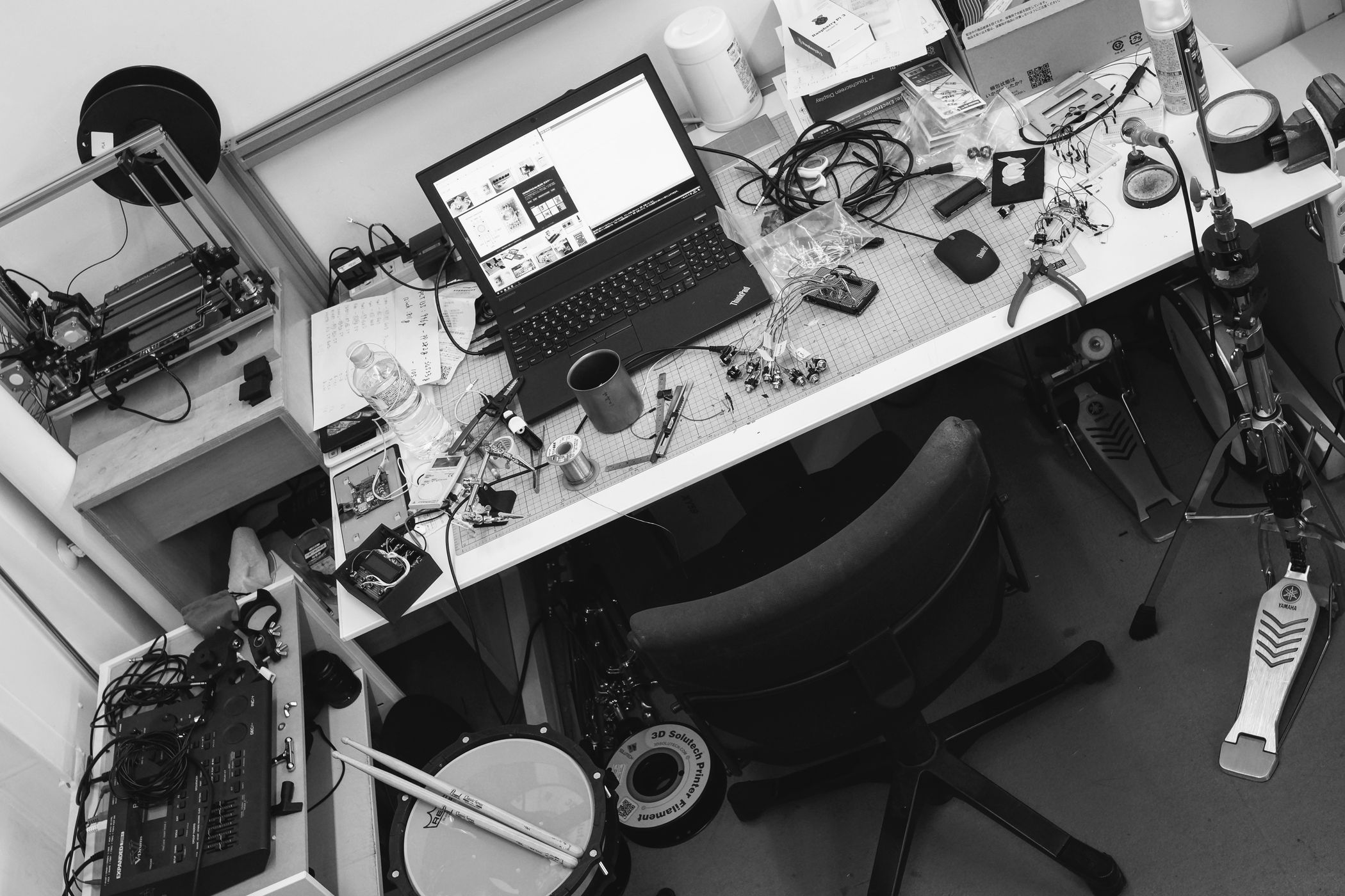 piezo. I realized the greatness of electronic drums such as Roland, Yamaha, and Alesis, which process the